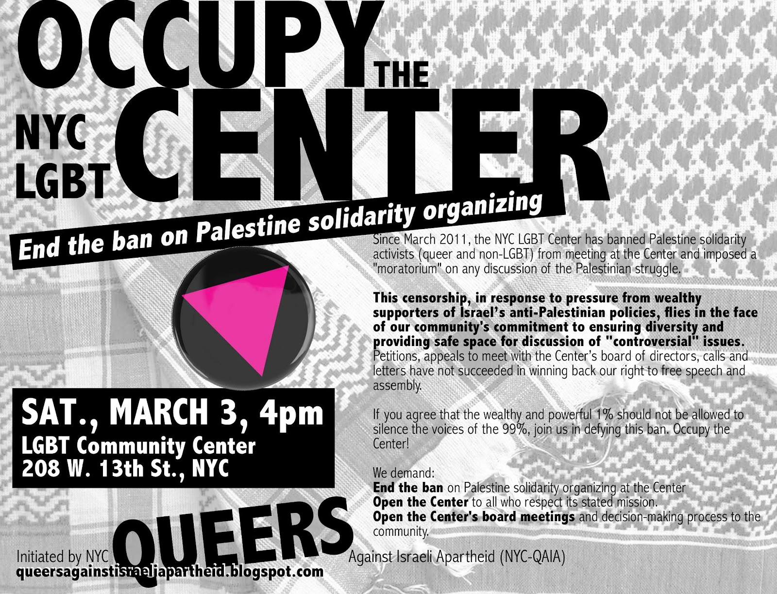 QAIA works on the issue of Zionist violence, US support for it, and Israeli pinkwashing. We are proud and supportive of other anti-racist and anti-colonial activists around the globe (and we can’t help it: we especially love the queer ones.) There are SO MANY other issues that also need attention. We encourage trolls to get off our Facebook and go address them.